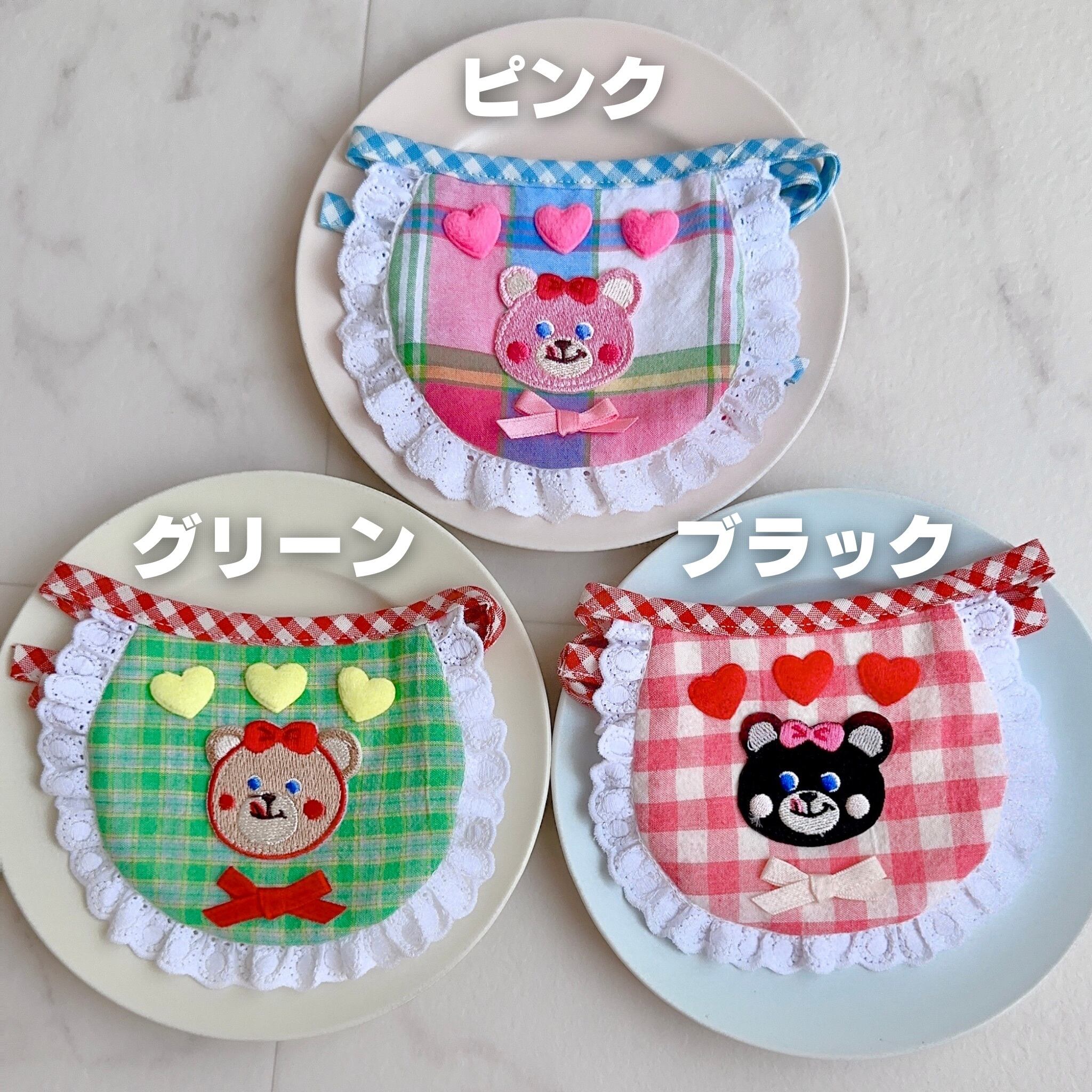 カラフルチェックにクマのワッペンがとってもかわいいbibです